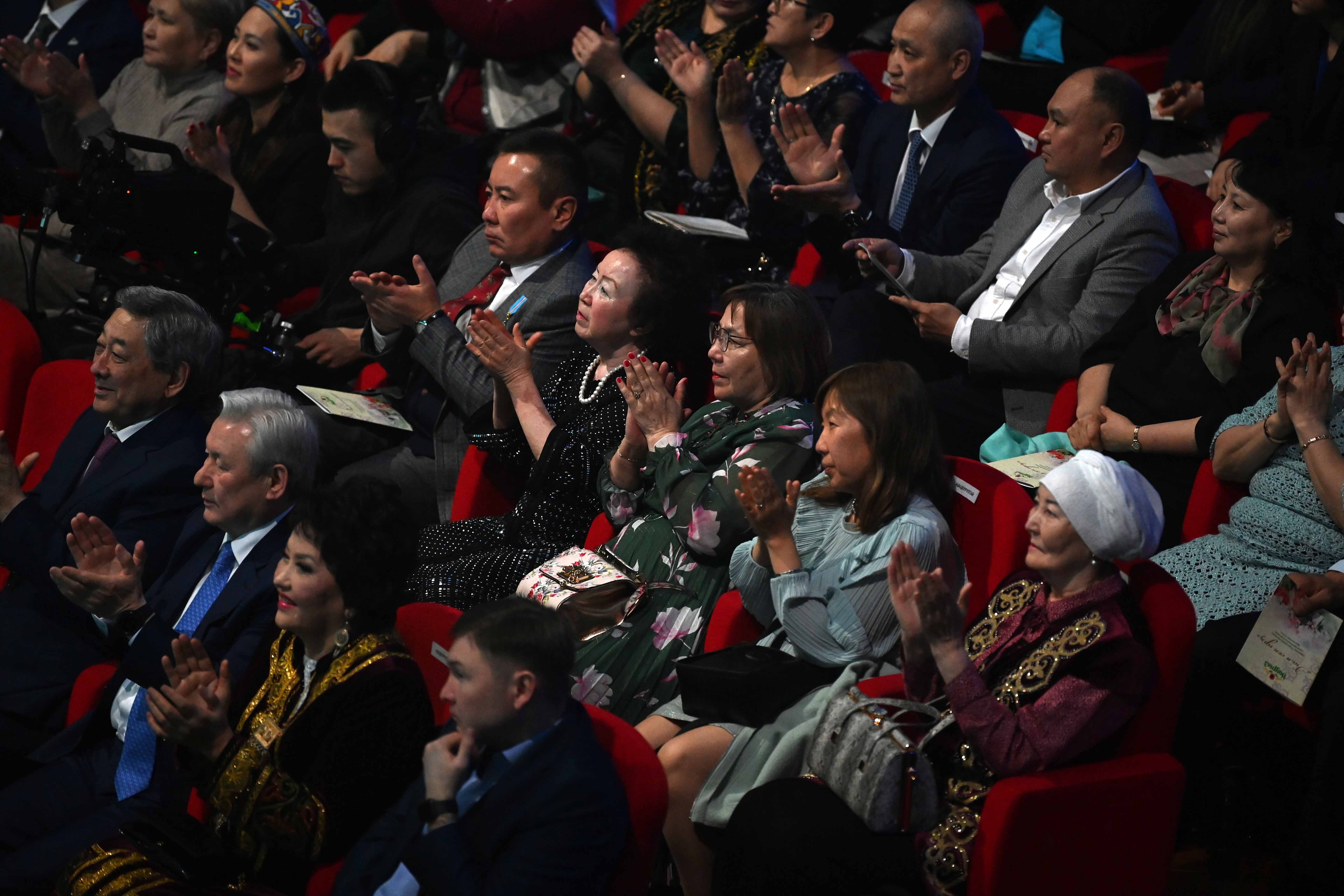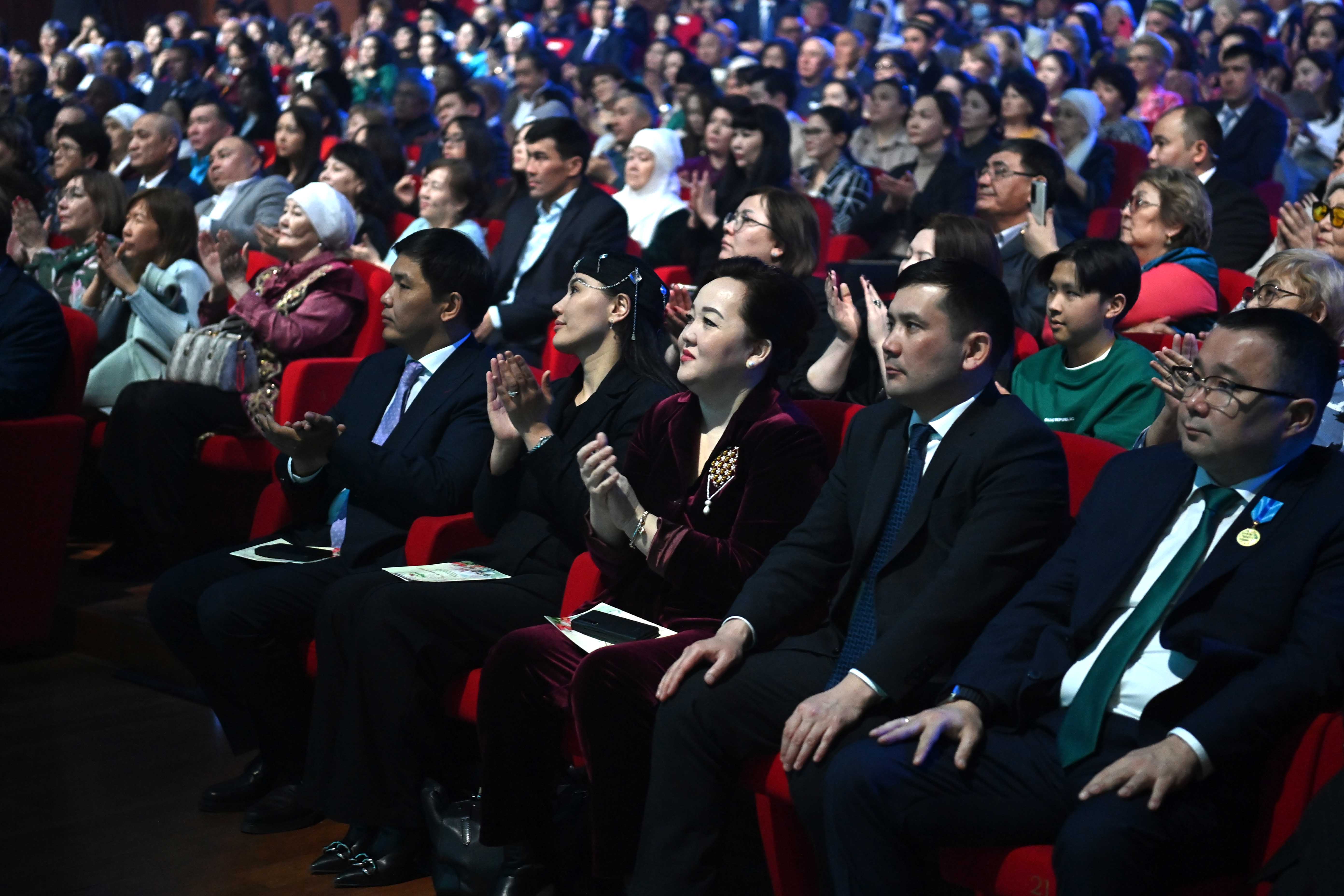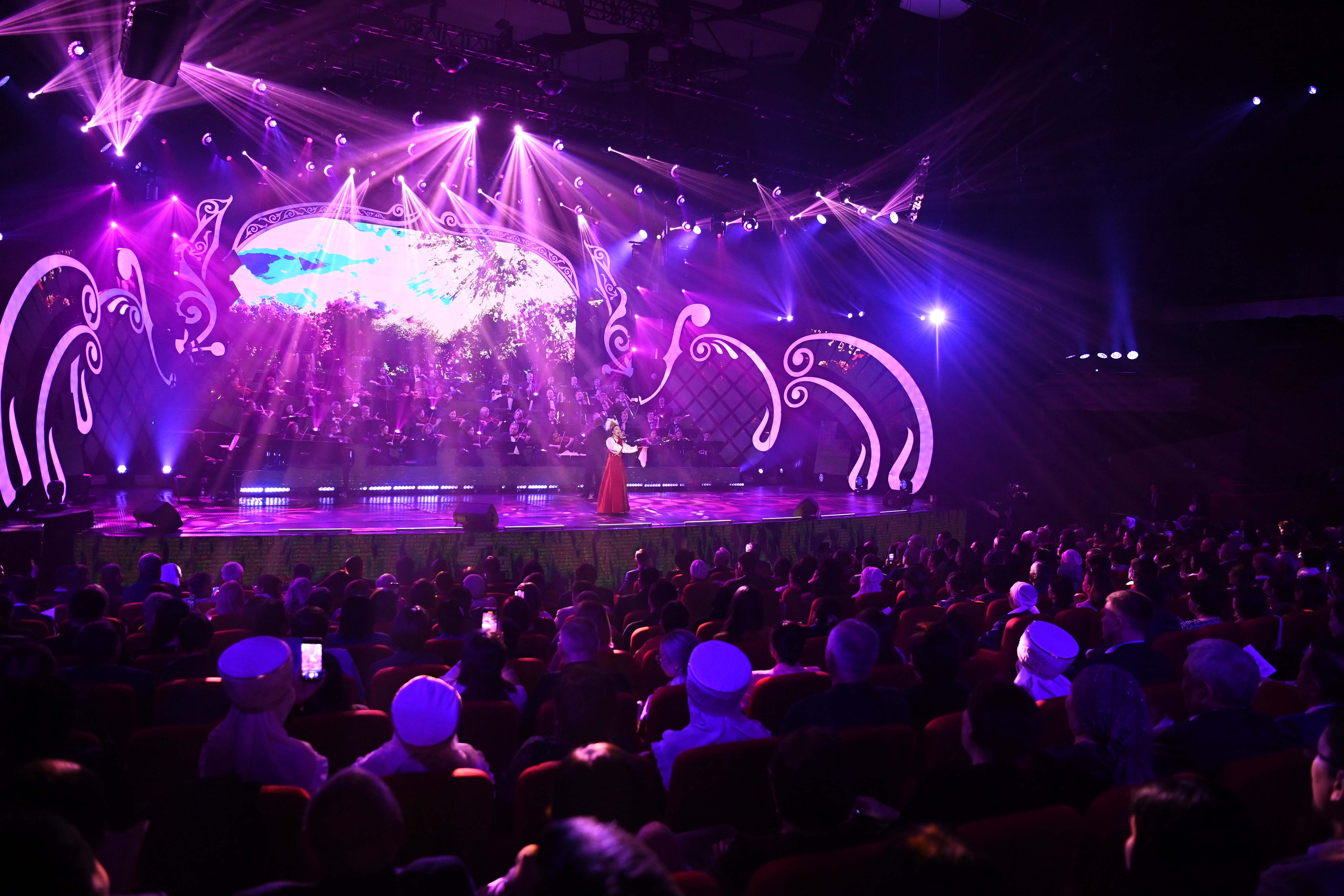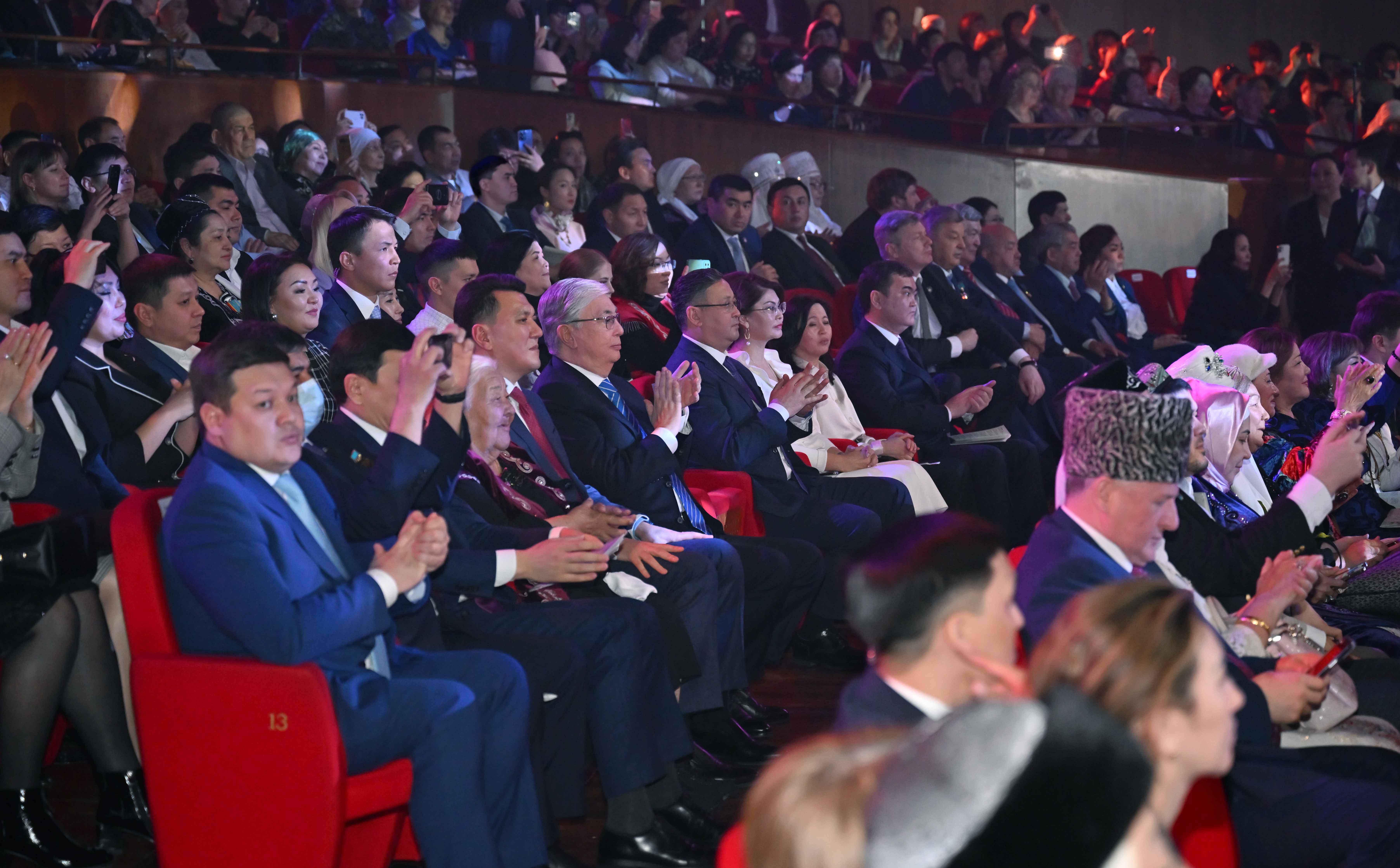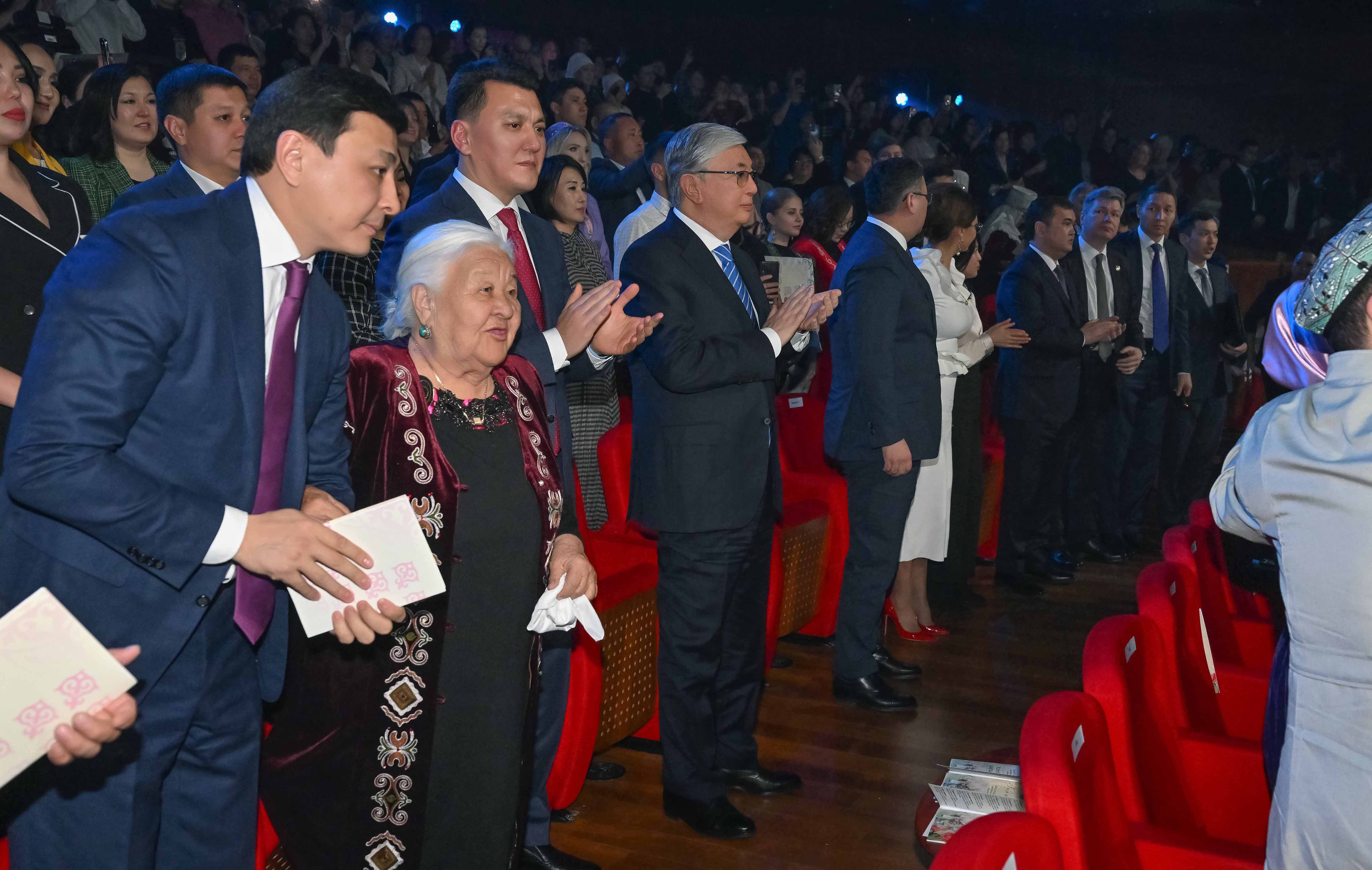 В продолжение праздничной программы Касым-Жомарт Токаев посетил концерт отечественных мастеров искусств, посвященный творчеству композитора Шамши Калдаякова.