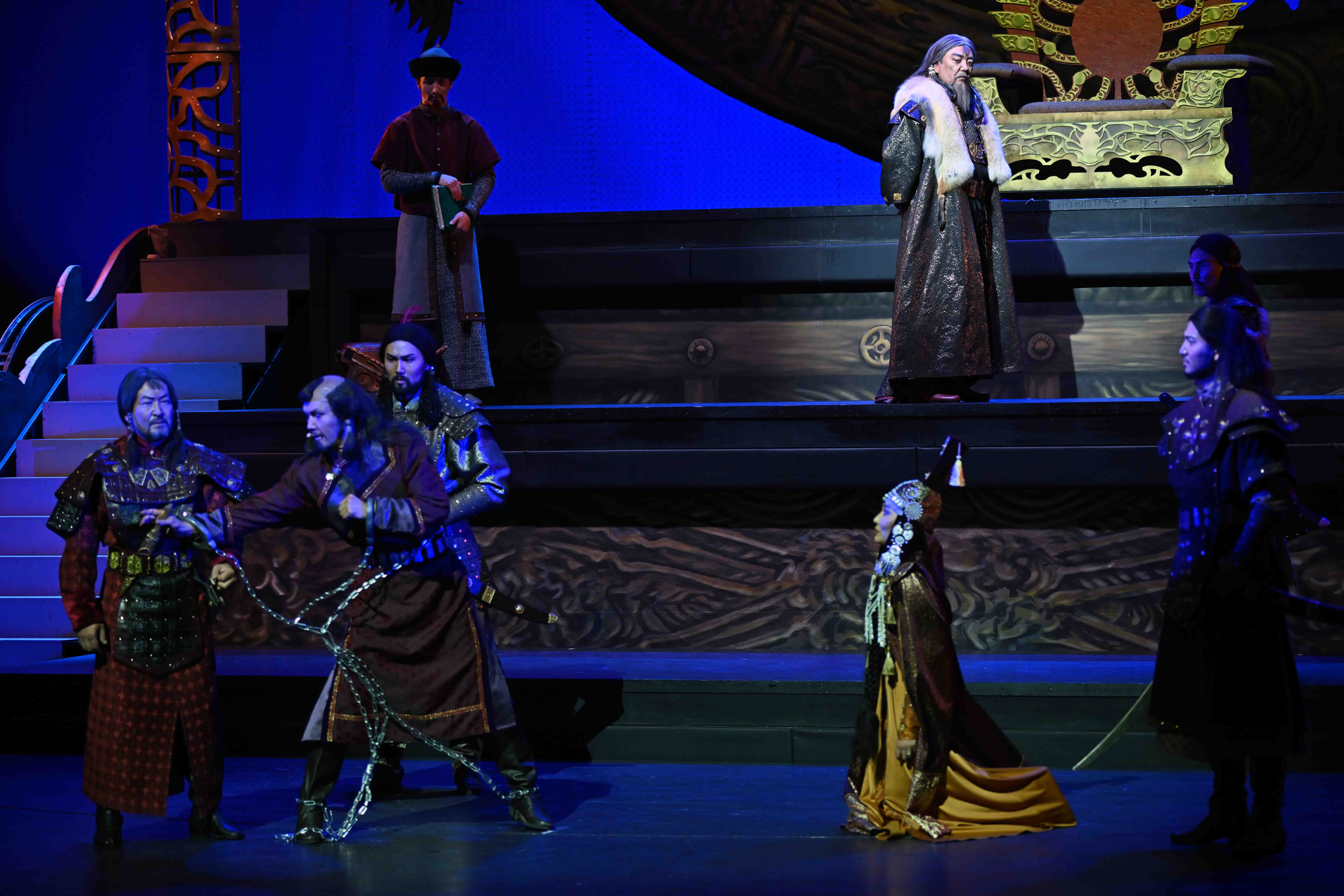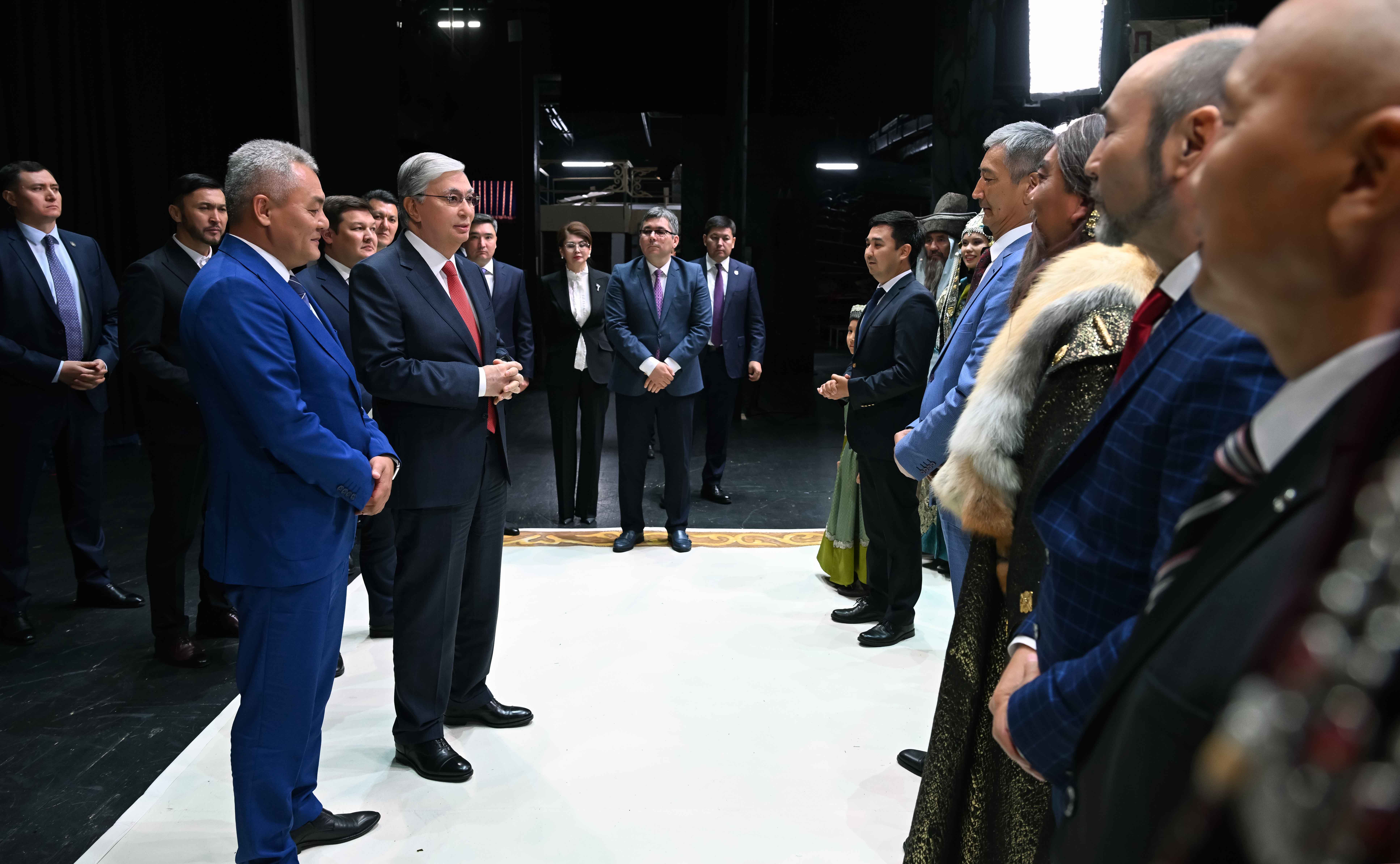 Глава государства Касым-Жомарт Токаев посетил Государственный академический казахский музыкально-драматический театр имени К.Куанышбаева, где посмотрел премьеру спектакля «Жошы хан».