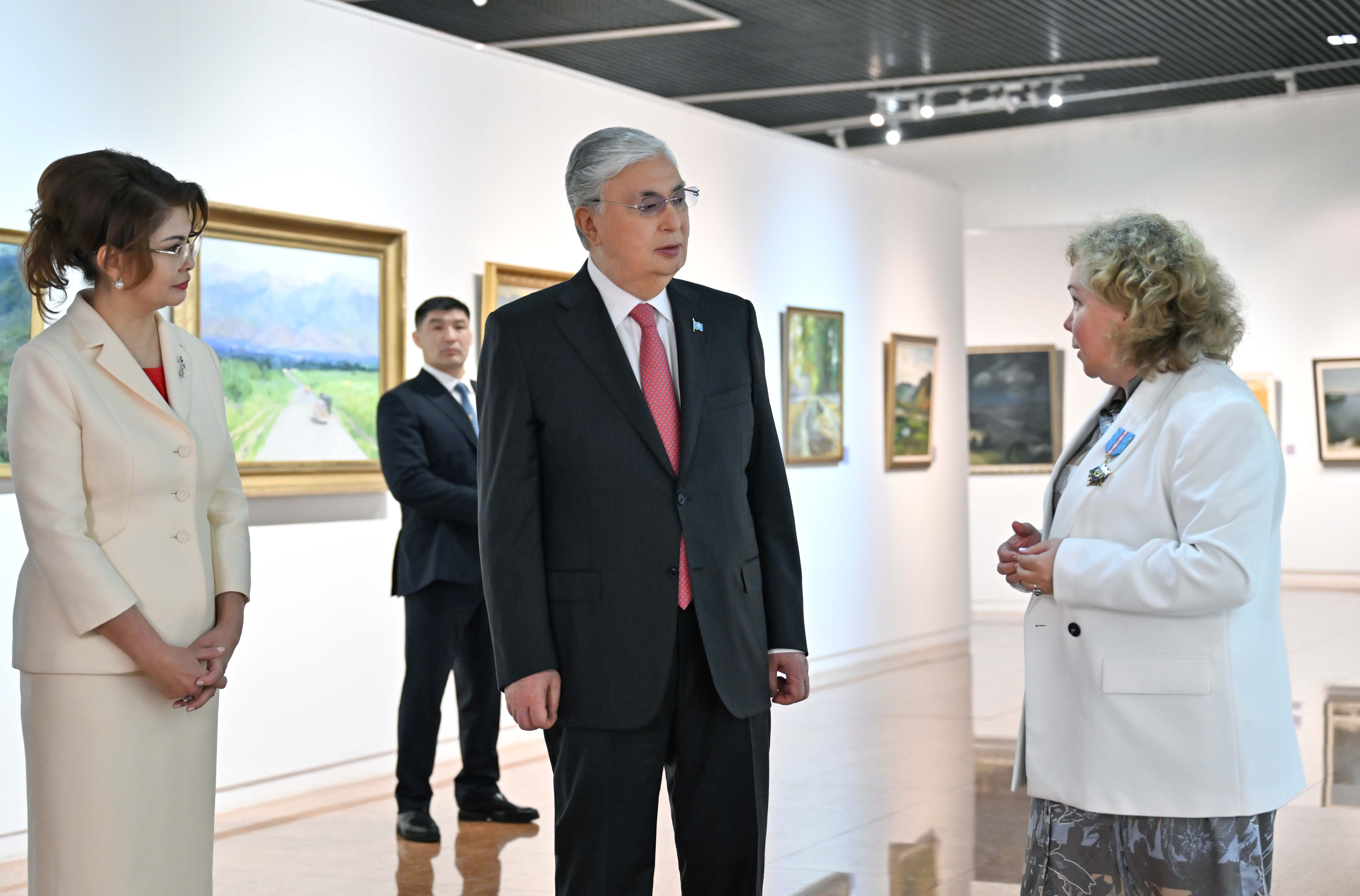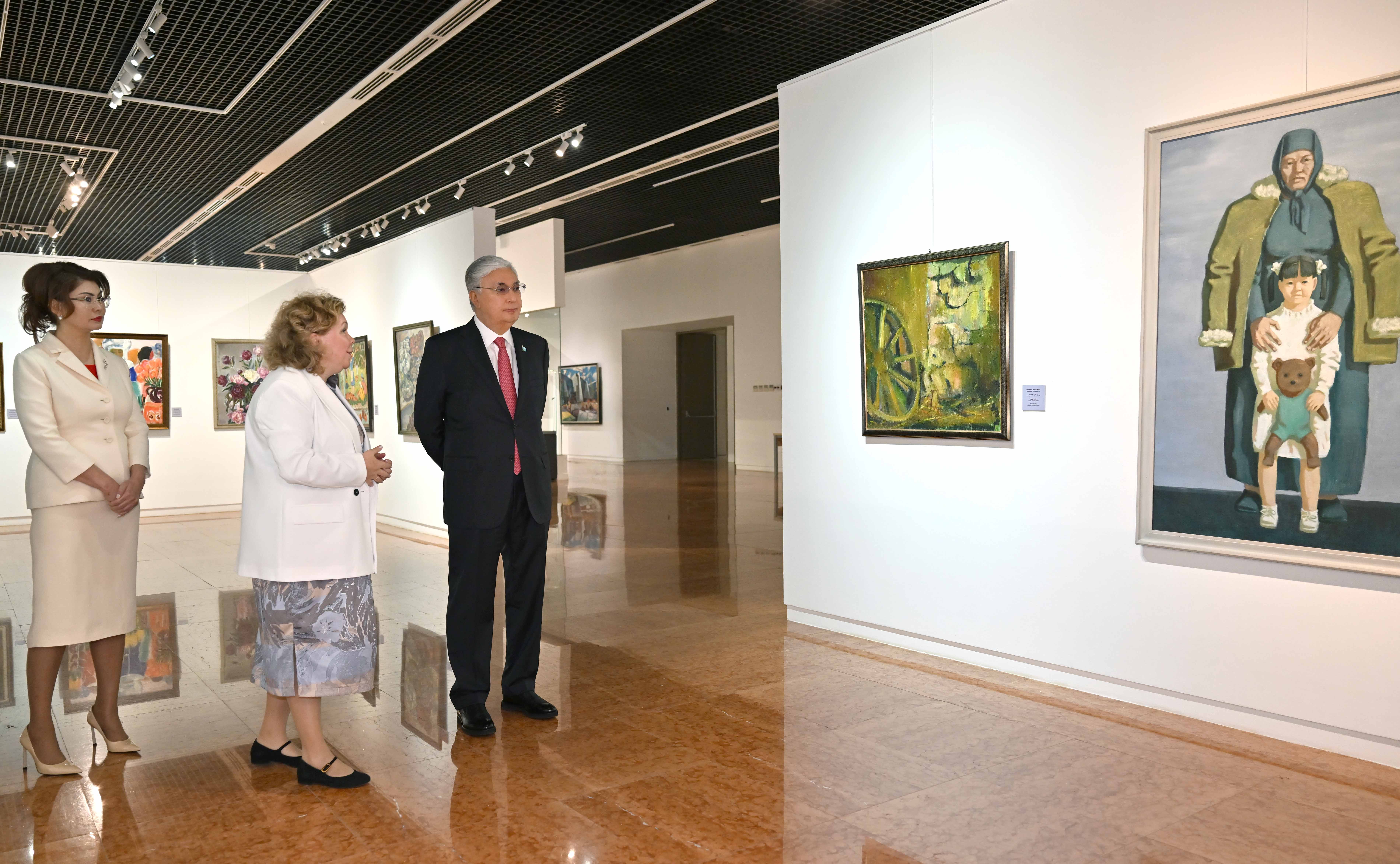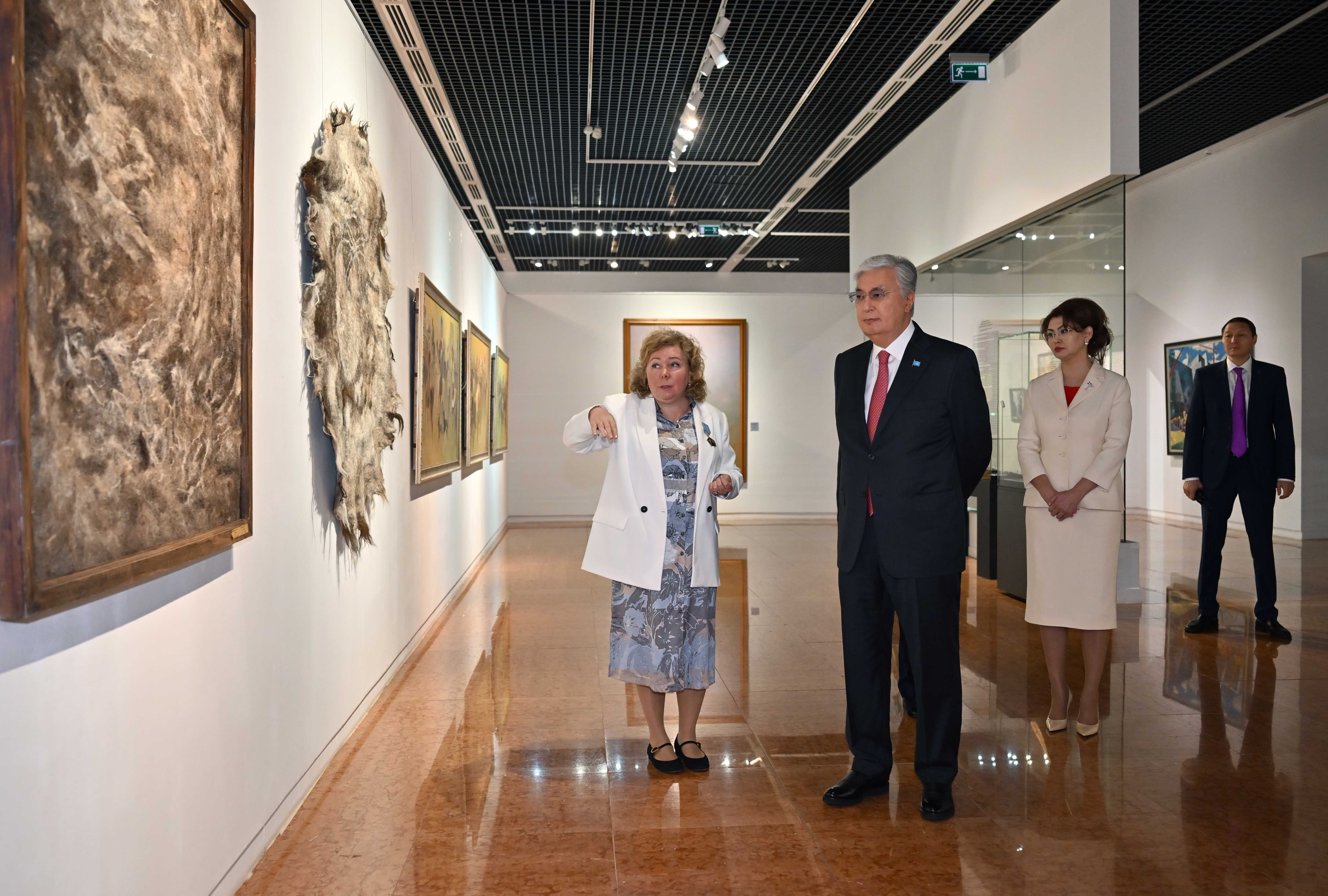Глава государства Касым-Жомарт Токаев посетил Национальный музей и осмотрел выставку произведений отечественного и мирового изобразительного искусства.