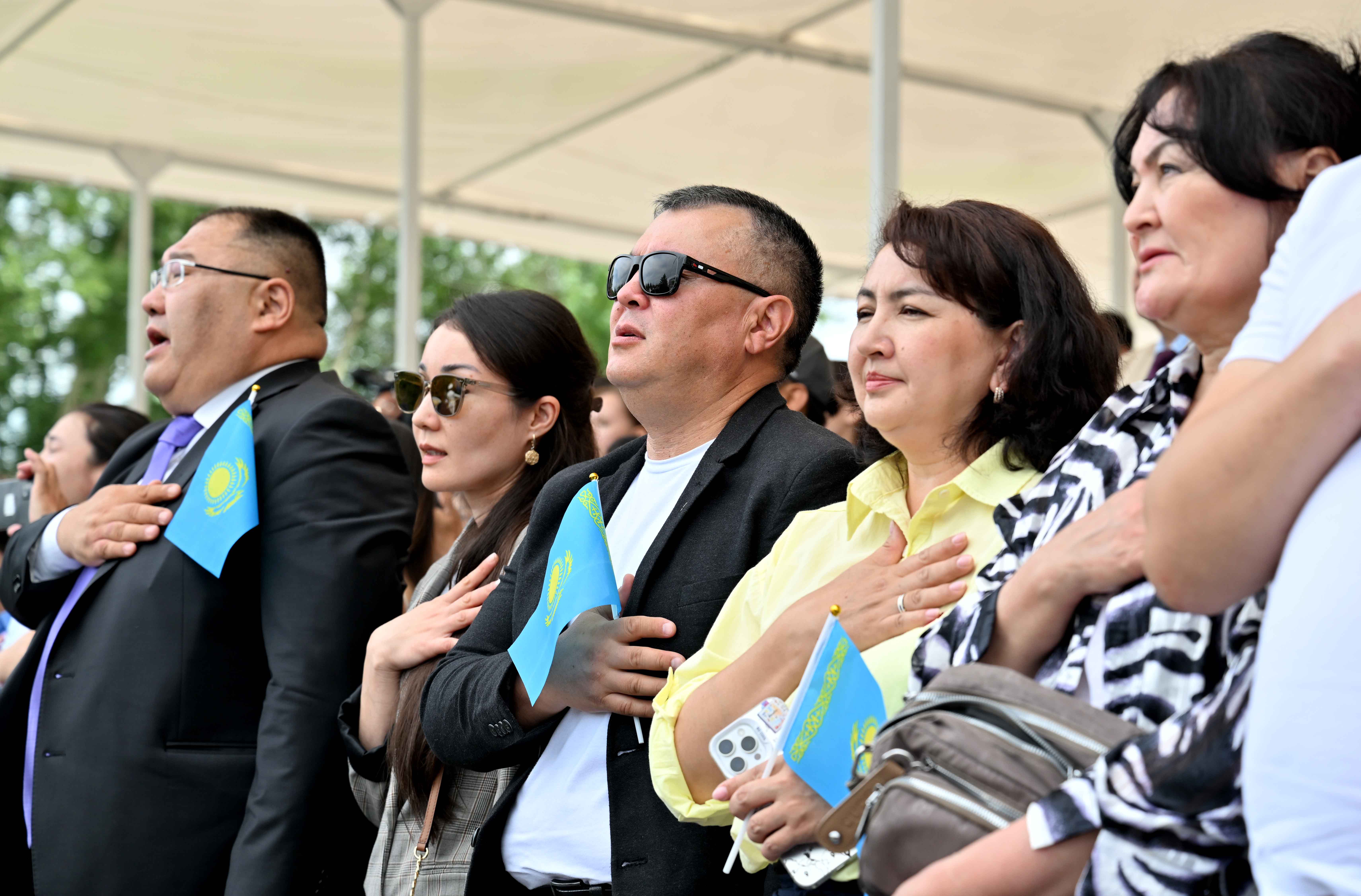 – В этом году наши военнослужащие впервые самостоятельно выполнили миротворческую миссию под небесно-голубым полотнищем. Казахстан – сильное и прогрессивное государство, и это подтверждают достижения наших соотечественников. Государственные символы пробуждают в каждом из нас неизмеримое чувство гордости за страну. Герб, Флаг и Гимн – это олицетворение подлинного патриотизма. Они занимают особое место в сердце каждого гражданина. В них ярко воплощаются наша общенациональная идентичность и устремленность в будущее, – подчеркнул Президент.