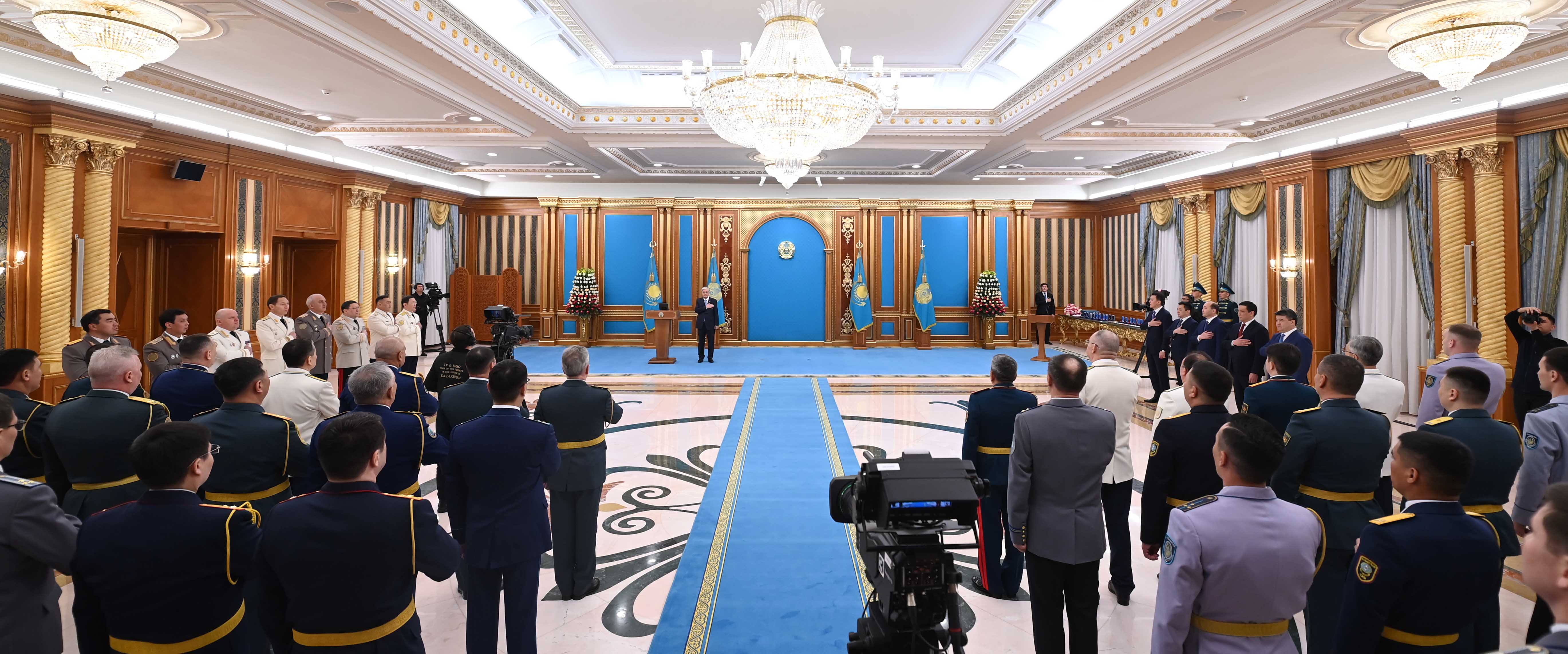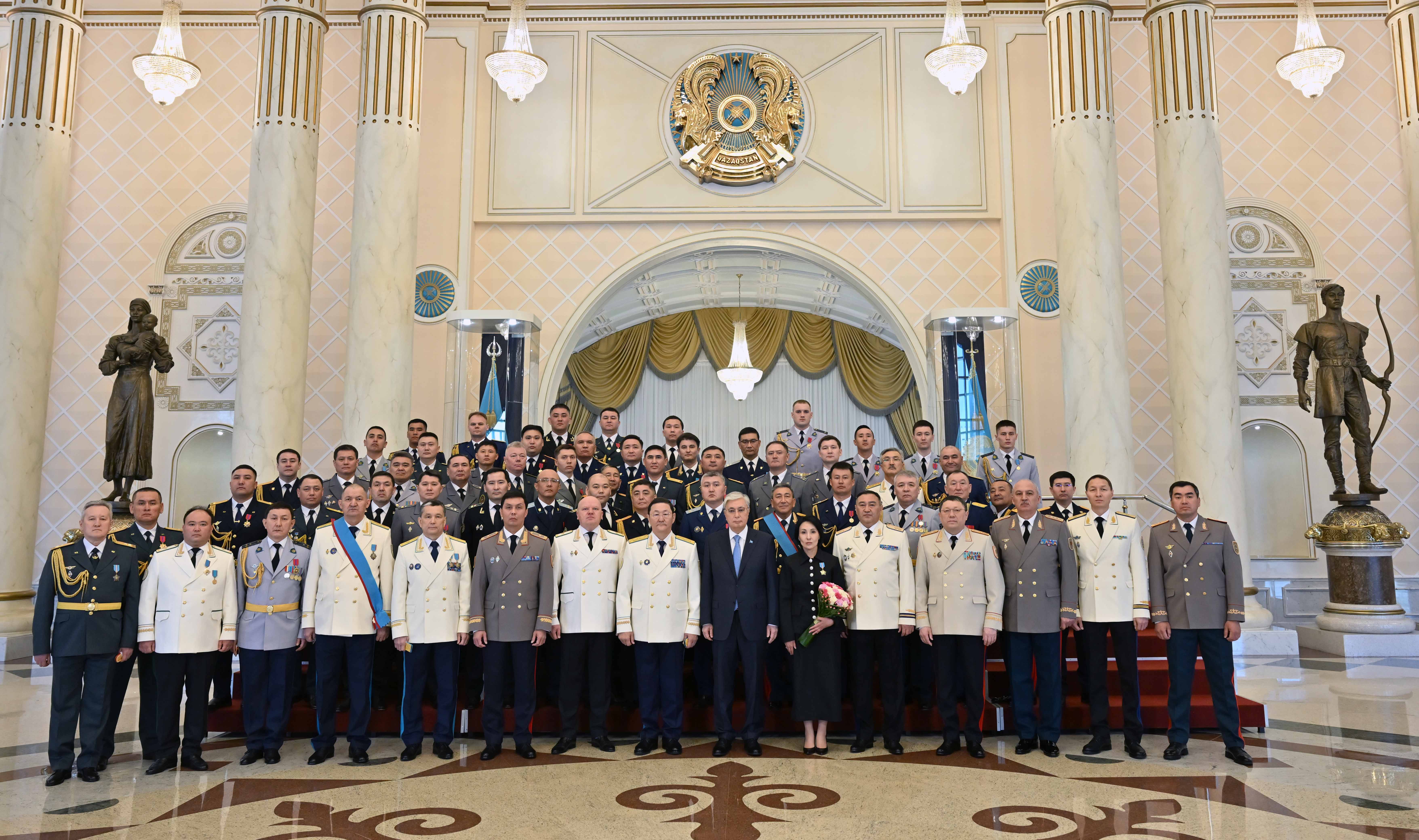 Глава государства, отметив большой вклад защитников Отечества в сохранение мира и согласия в стране, присвоил воинские и специальные звания, классные чины офицерам.