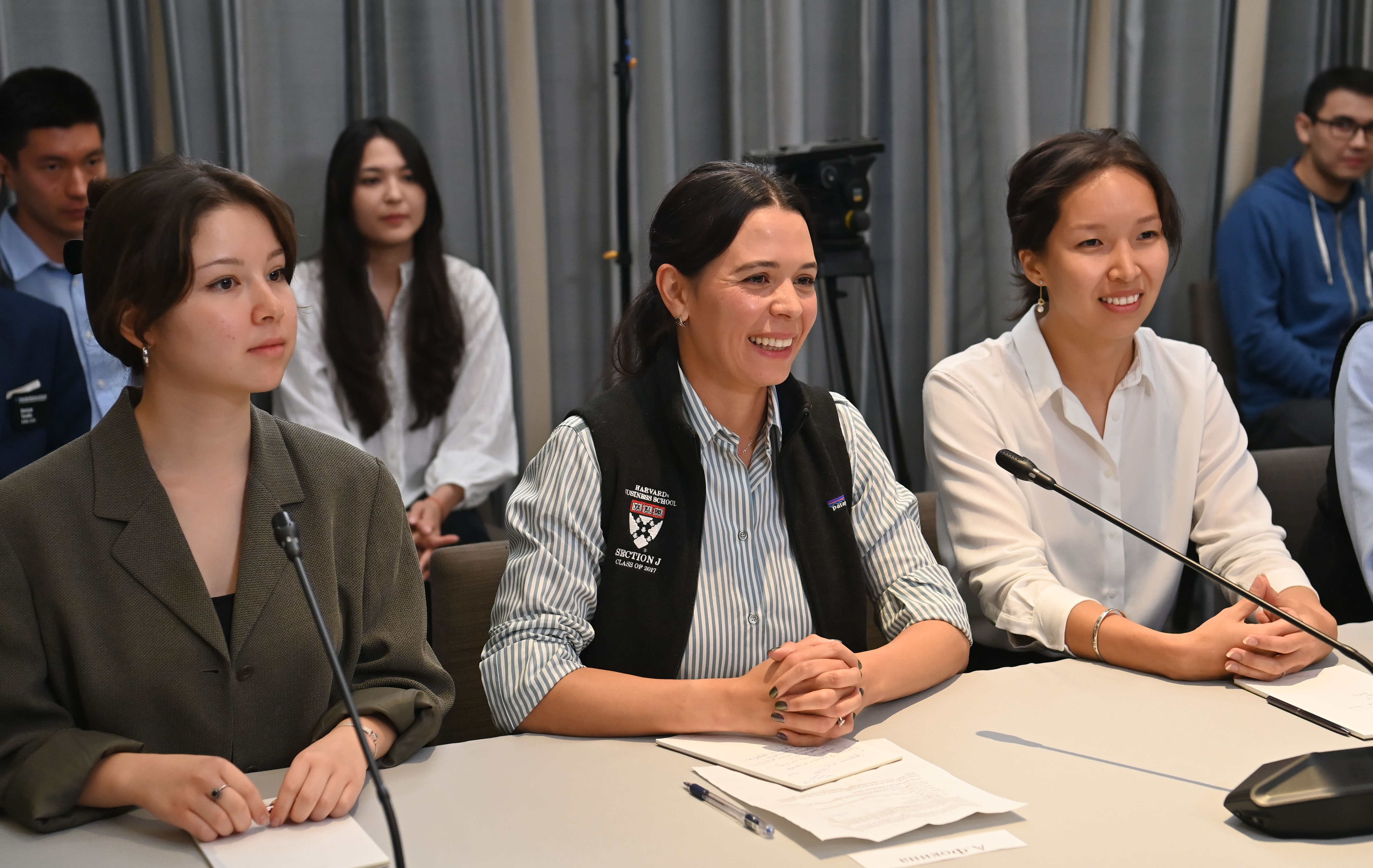 На встрече выступили руководитель по стратегии и развитию компании Taskrabbit.com Асет Абдуалиев, венчурный инвестор, директор DCVC Анна Фокина, инженер-программист Google Арай Сабыржан и менеджер-программист Booking.com Алибек Датбаев. Они поделились с Президентом впечатлениями от работы в иностранных компаниях и высказали ряд предложений по дальнейшему развитию и повышению конкурентоспособности отечественной IT-сферы.