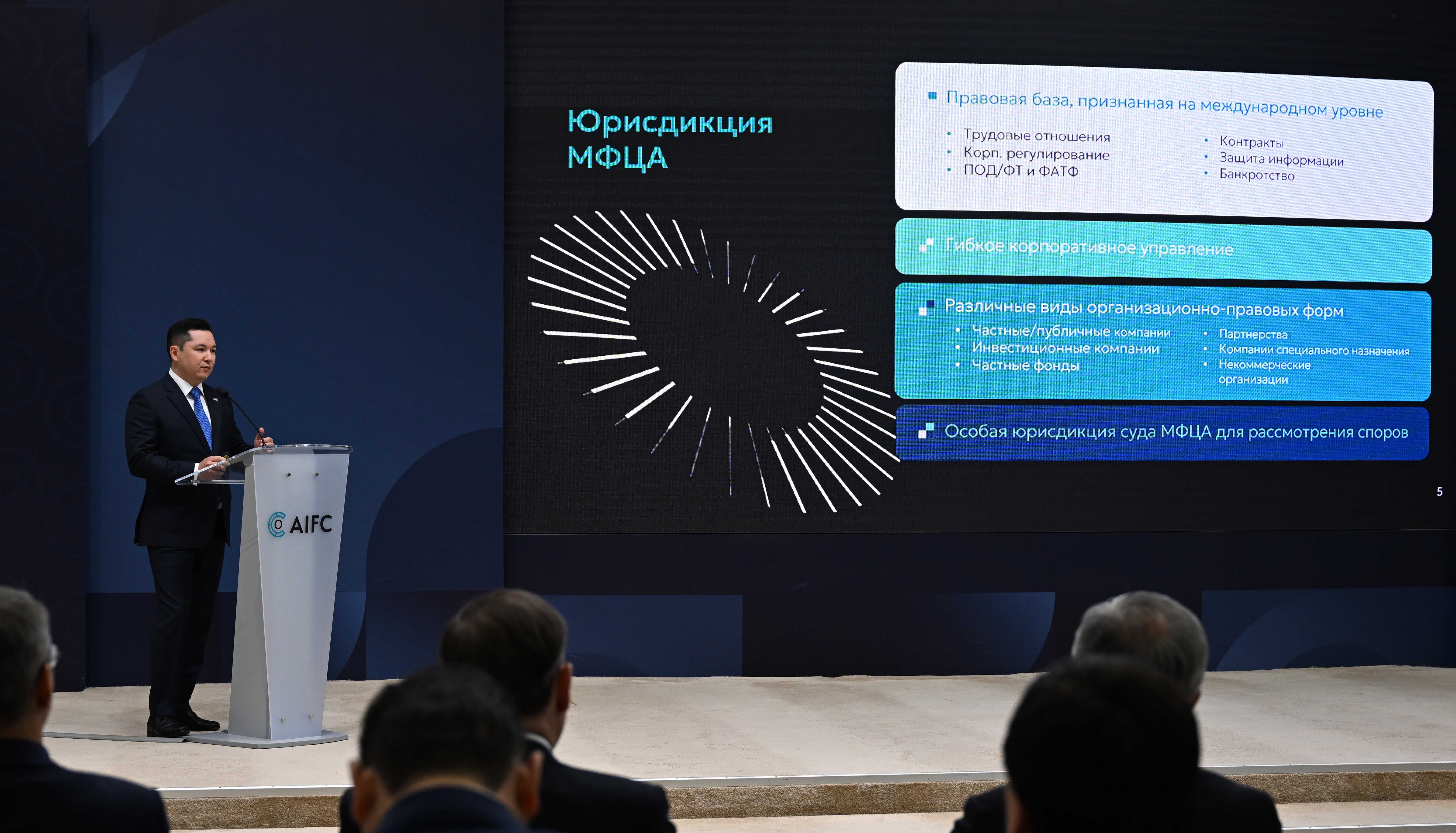 Управляющий МФЦА Ренат Бектуров рассказал президентам об основных направлениях деятельности финансового центра и его вкладе в развитие региональных инициатив.