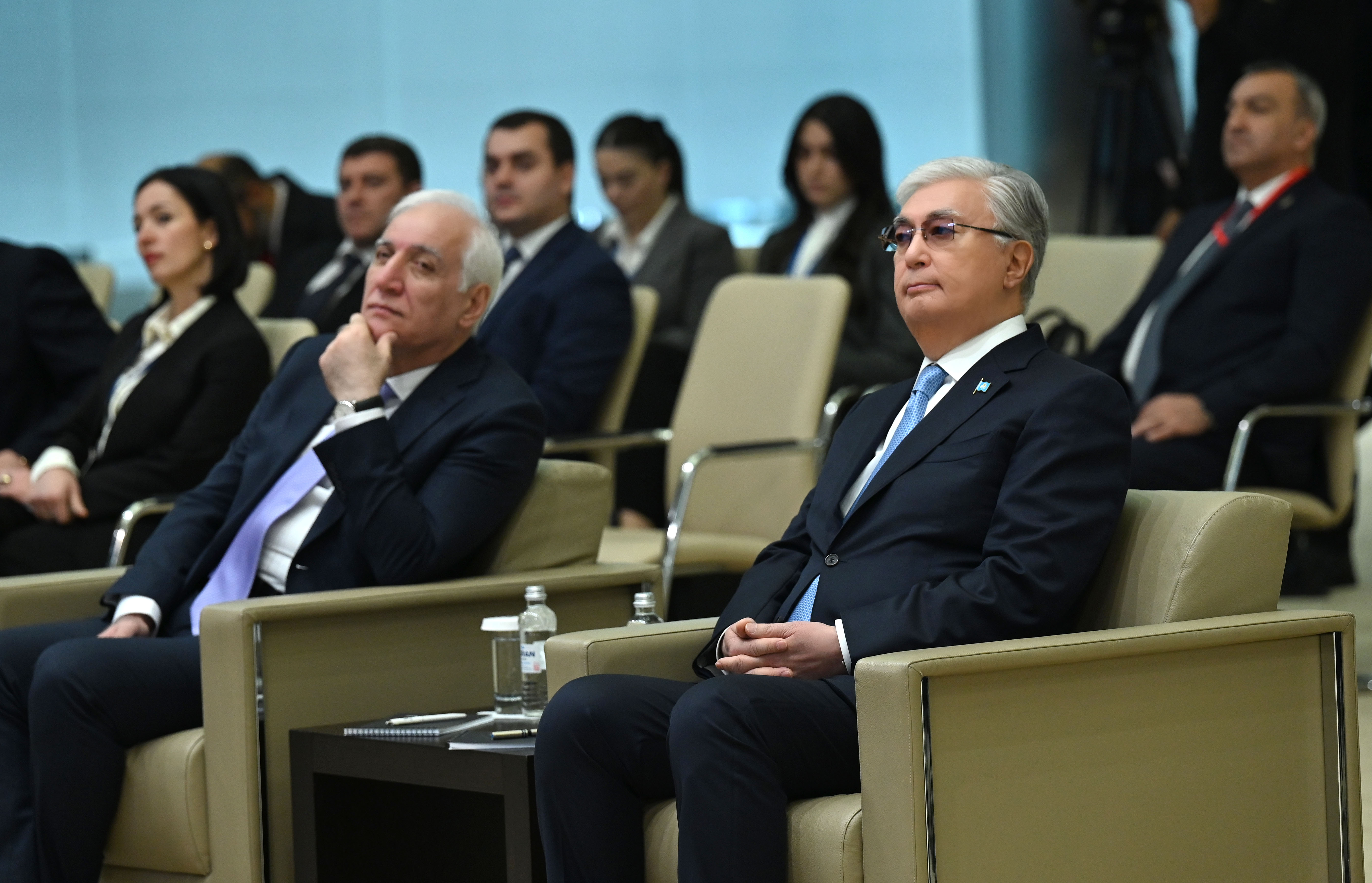 Глава государства Касым-Жомарт Токаев и Президент Армении Ваагн Хачатурян, находящийся с официальным визитом в Казахстане, посетили Международный финансовый центр «Астана».