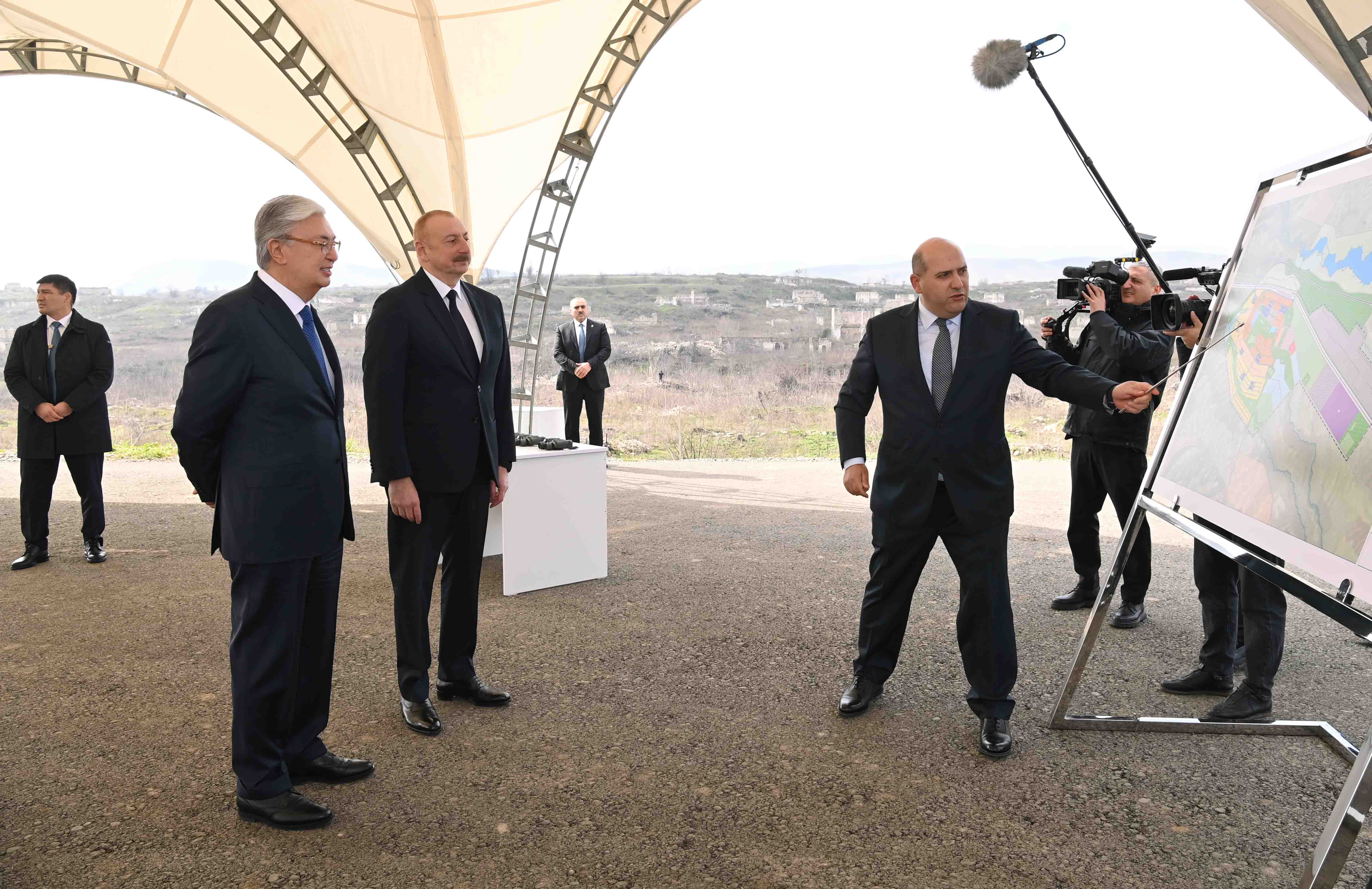 Второй день государственного визита Касым-Жомарта Токаева в Азербайджанскую Республику начался с совместного осмотра с Ильхамом Алиевым разрушенных мест и ознакомления с генеральным планом развития г.Физули.