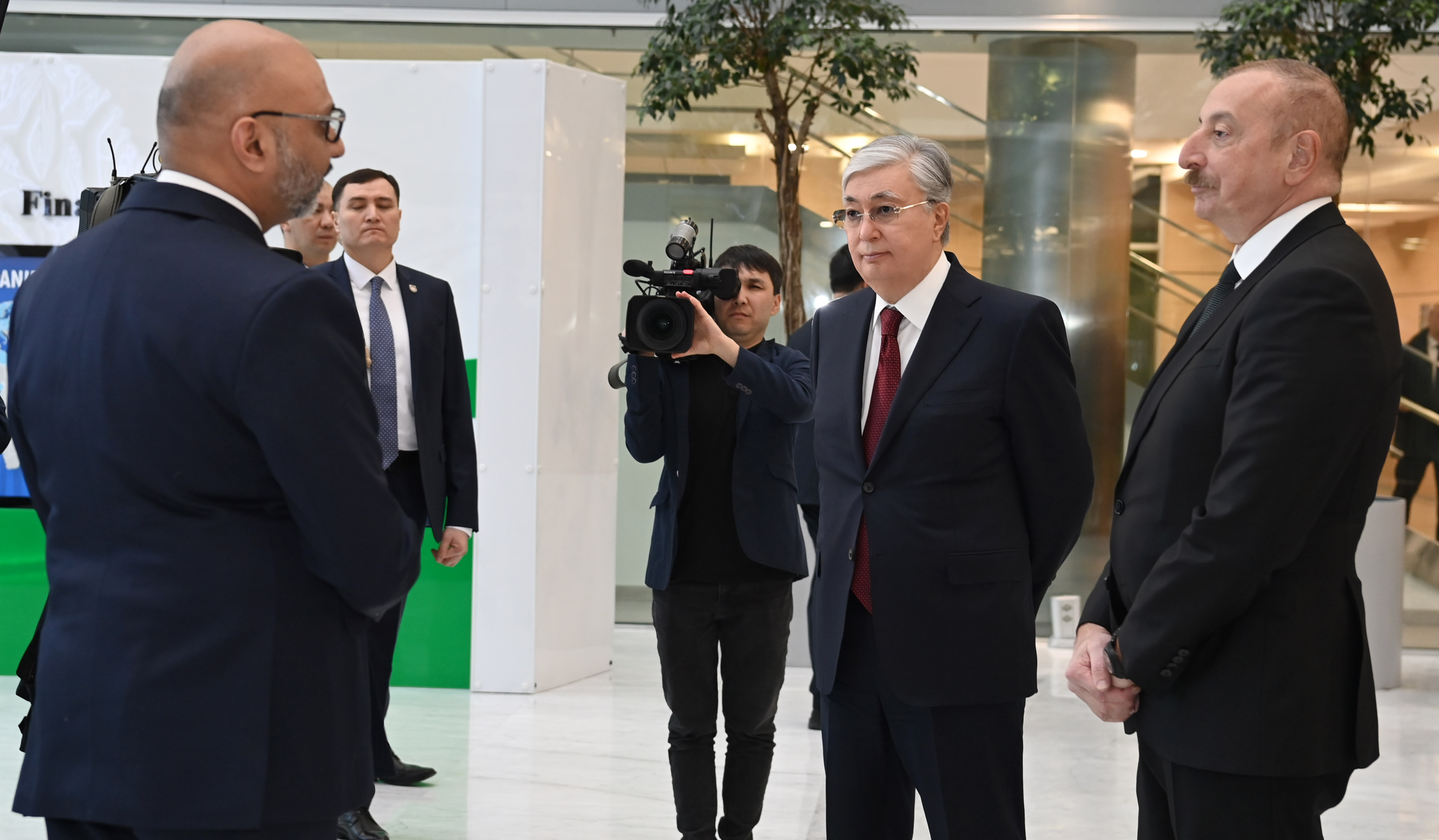 В ходе официального визита Президента Азербайджана в Казахстан Касым-Жомарт Токаев и Ильхам Алиев посетили Международный финансовый центр «Астана».