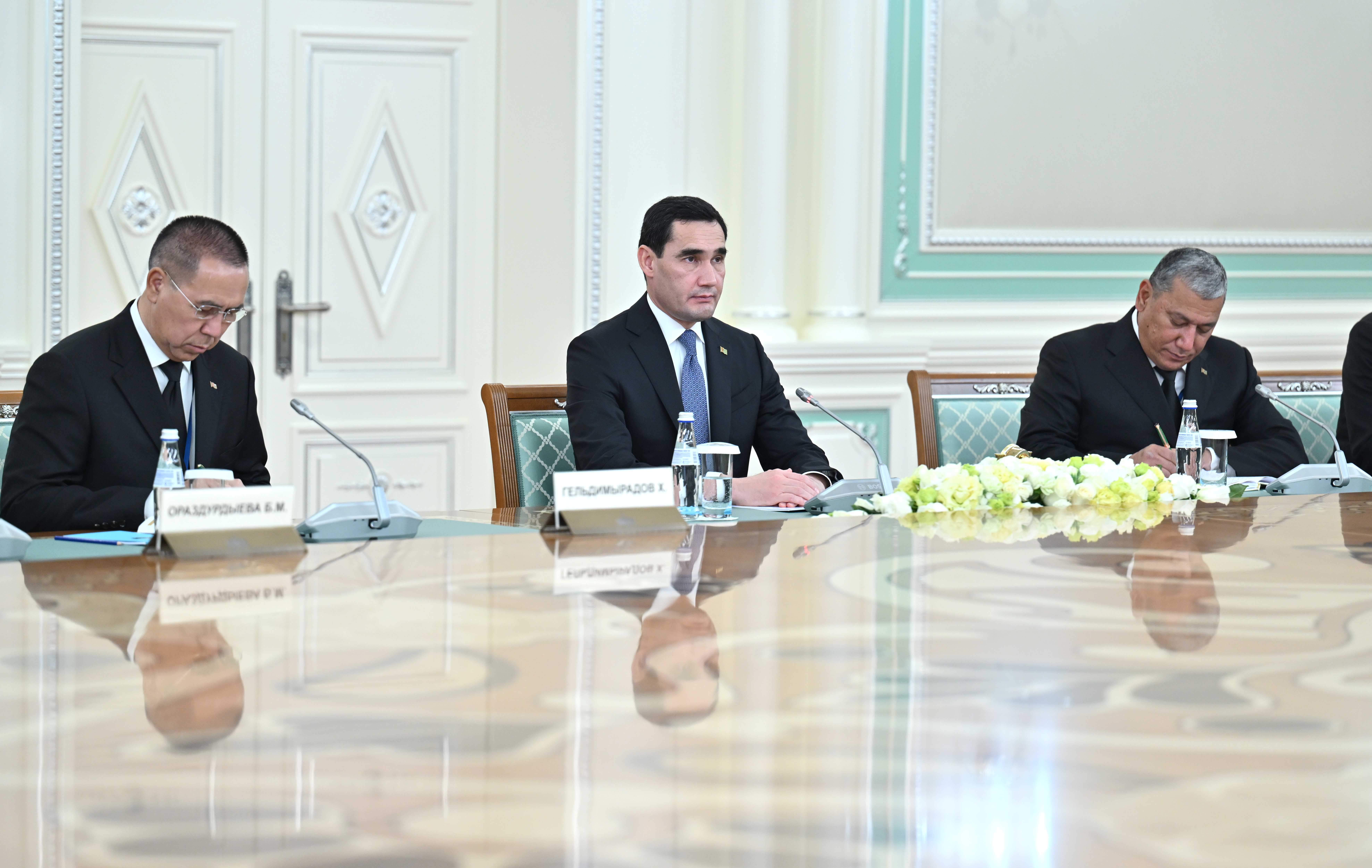– Наши государства соединяют общность исторических корней, духовная близость культурных ценностей, а также традиции и обычаи, бережно хранимые и передаваемые из поколения в поколение. В политико-дипломатической сфере Туркменистан и Казахстан осуществляют конструктивное взаимодействие по актуальным вопросам глобальной повестки по обеспечения мира, безопасности, укреплению энергетической стабильности, развитию транспортной взаимосвязанности, достижению целей устойчивого развития и противодействию изменению климата, – сказал он.