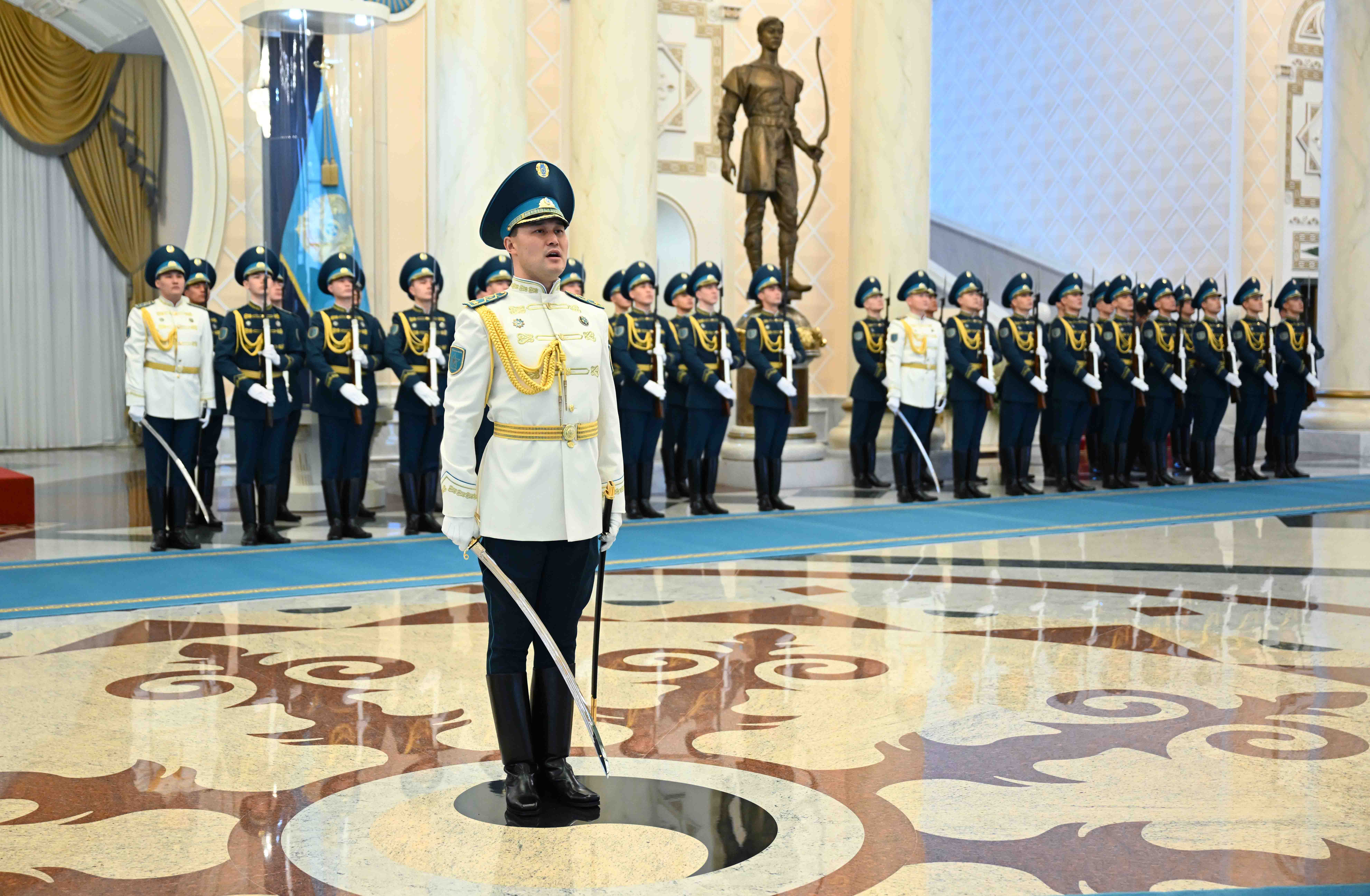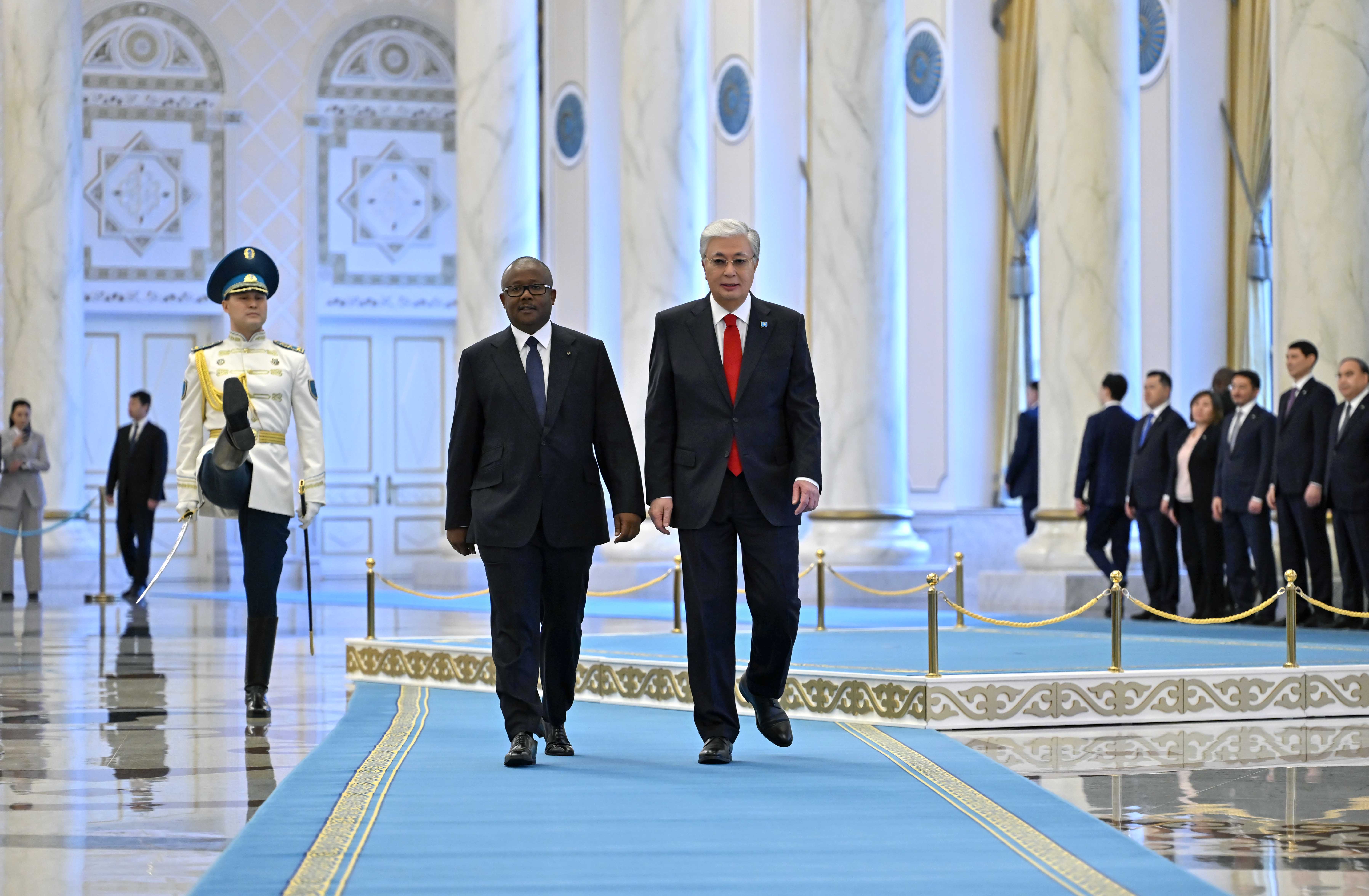 Президенты представили друг другу членов делегаций. Начальник роты почетного караула отдал приветственный рапорт, прозвучали государственные гимны двух стран. Затем Касым-Жомарт Токаев и Умару Сисоку Эмбало провели переговоры в узком составе.