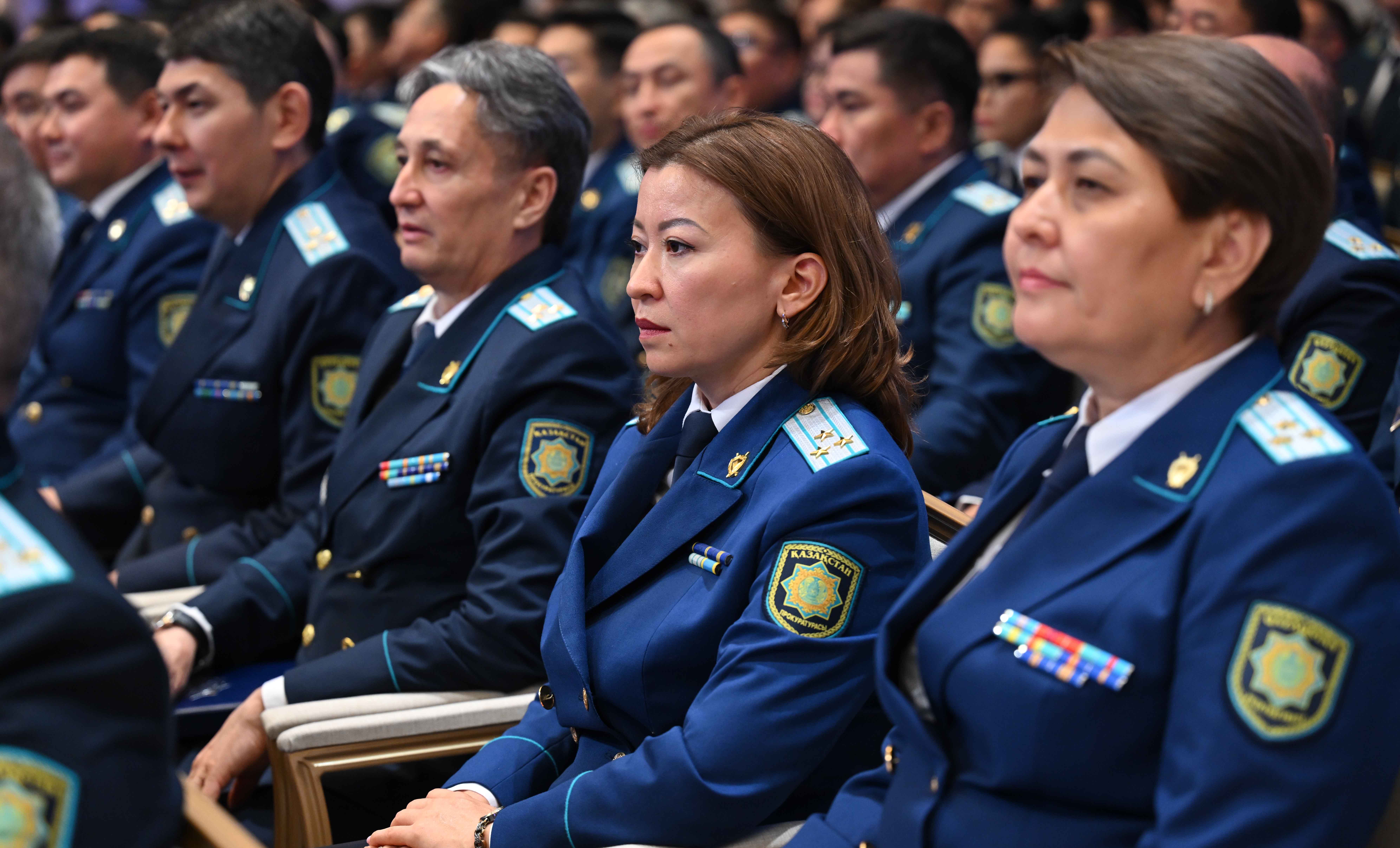 Недавно наши силовики провели масштабные операции по ликвидации крупной нарколаборатории в Алматинской области и транснациональной ОПГ в Мангистауской области. В результате нанесен серьезный удар по наркобизнесу. Участникам этих спецопераций вручены высокие государственные награды. Ваша повседневная работа сопряжена с повышенной опасностью. За годы Независимости при исполнении служебного долга погибли 842 сотрудника, более четырех с половиной тысяч получили ранения. Сегодня мы вручим награды родственникам трагически погибших героев. Важно хранить память об их беспримерных подвигах как пример самоотверженного служения обществу. Предлагаю рассмотреть возможность присвоения ведомственным наградам имен героев, погибших при исполнении служебного долга.